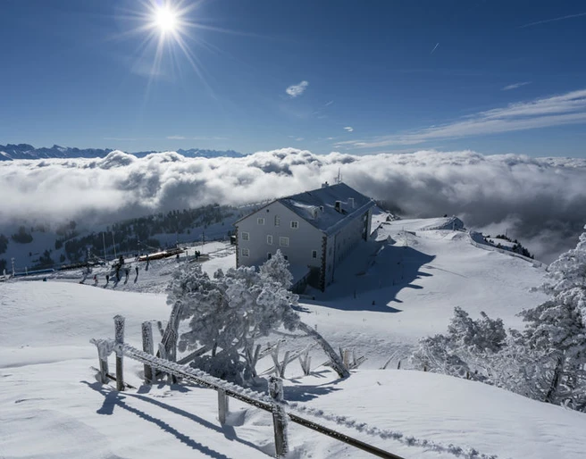 Nach dem Erklimmen des Gipfels wartet eine atemberaubende 360° Rundsicht auf Sie. Die Aussichts-Kombination mit schneebedeckter Alpenkette, Flachland mit 13 Seen, Ausblicken nach Deutschland und Frankreich und Vogelperspektive auf die Städte Luzern und Zug machen den Rigi-Ausflug zu etwas Einzigartigem. Der Blick wandert in nördlicher Richtung über Ägeri, Lauerzer- und Zugersee in Richtung Zürich. Im Nordwesten blickt man übers Schweizer Mittelland bis zum Schwarzwald und zu den Vogesen. Der Süden präsentiert sich mit der hoch hinaus ragenden und Schnee bedeckten Alpenkette wiederum komplett anders und auf seine Art atemberaubend und faszinierend. Bei optimaler Fernsicht sind auf Rigi Kulm gar 24 der 26 Schweizer Kantone zu sehen. Kein Wunder also, wird die Rigi auch Königin der Berge genannt.