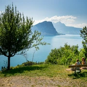 Mit dem Zug geht's nach Brunnen. Danach nehmen Sie den Bus Richtung Gersau. An der Haltestelle Urmiberg aussteigen.