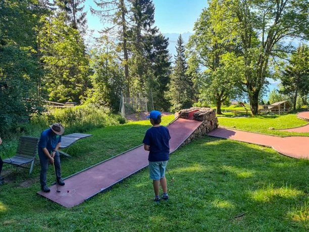 The mini-golf course is closed in winter and when the Hotel Rigi Kaltbad is closed due to off-season. The Rigiland adventure playground is close by, as is the Känzeli viewpoint.