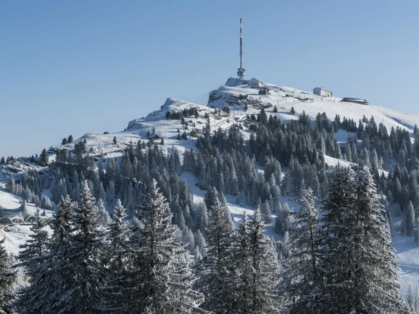 To the north towards Zurich, the view takes in Lake Aegeri, Lake Lauerz and Lake Zug. To the north-east, you can see the Swiss plateau dotted with lakes through to the Black Forest and the Vosges mountains. The southern vista is completely different – it encompasses the soaring, snow-capped Alpine ranges and is breathtakingly spectacular in its own right.