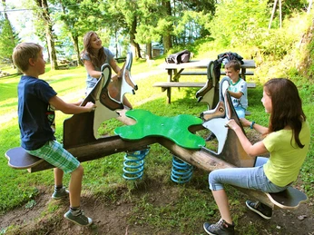 The playground offers various ways for children to run around and play: climbing rocks, numerous toys, a sandpit and a biotope provide entertainment for young and old. There are two barbecue areas with tables, benches and firewood immediately below the playground.
