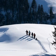 The Scheidegg circular route can be used as a hiking trail or a snowshoe trail. The start and end point of the hike is at Rigi Burggeist. Along the way, approximately 100 meters of elevation are covered, and the hike takes between 90-120 minutes depending on fitness level. The paths are untracked, allowing you a unique hiking experience. Snowshoes and poles can be rented at the mountain inn Rigi Burggeist. You will also find a map of this snowshoe tour at the mountain inn.
