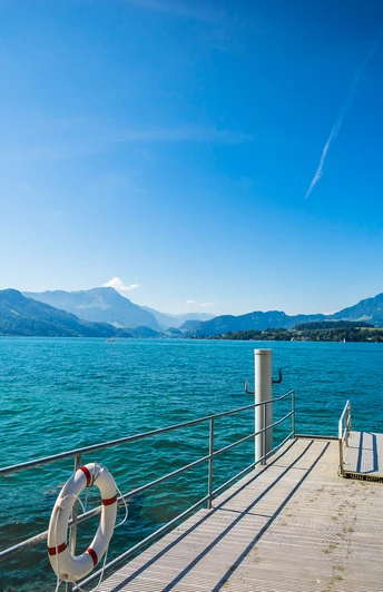 Stroll with views of the Alps - From Küssnacht through the nature reserves in Wagenmoos, along the lakeshore at Meggen and Meggenhorn castle. Approach to the city of Lucerne and arrival along the 19th-century tourism alley, its quay with distant views of the Alps.