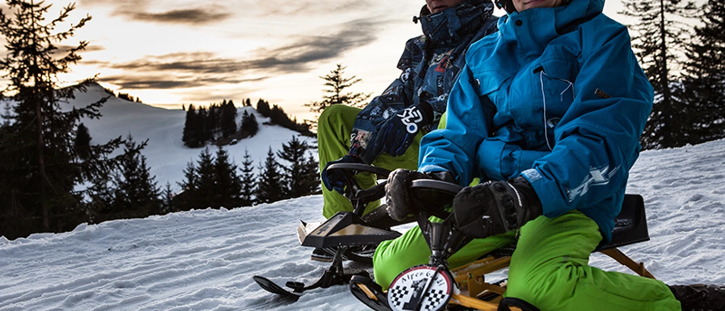 Après avoir traversé la piste de ski, on descend en luge via Tschungeli jusqu'à Rigi Klösterli. La piste, principalement située en forêt, est un grand plaisir pour tous les amateurs de luge. Depuis Rigi Klösterli, des navettes sportives ramènent les luges au point de départ.