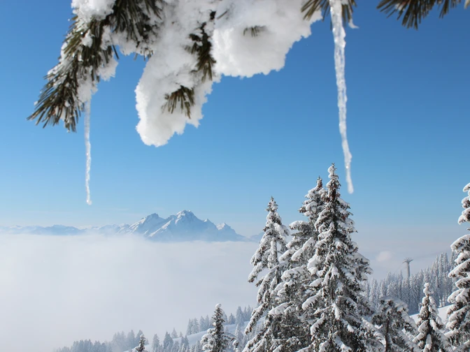 Le long de la voie de l'ancienne ligne de chemin de fer Rigi-Scheidegg, ce chemin facile mais panoramique suit initialement un parcours totalement plat jusqu'à Rigi First. Depuis la rive sud du lac, les sommets alpins enneigés saluent. À partir de Rigi First, une descente mène à la confortable bergerie Heiri-Hütte, qui invite à une collation alpine traditionnelle. Ensuite, le sentier continue en élégants lacets en descente vers le site de pèlerinage historique Klösterli, où de nombreux moines capucins ont autrefois vécu. La jolie chapelle de pèlerinage « Maria zum Schnee » (construite en 1689) compte parmi les plus belles chapelles de montagne au monde. Le train à crémaillère vous conduit à Goldau, le nœud de transport de la région.