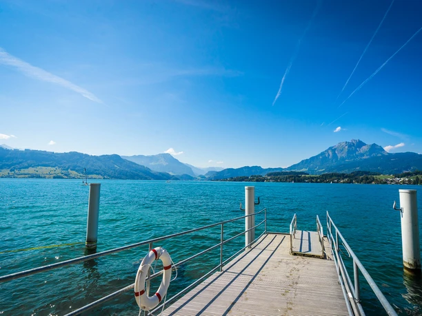 Promenade avec vue sur les Alpes - De Küssnacht par les réserves naturelles du Wagenmoos jusqu'à la rive de Meggen et le château de Meggenhorn. Approche de la ville de Lucerne et entrée par l'allée touristique, datant du XIXe siècle, le quai avec vue sur les Alpes.